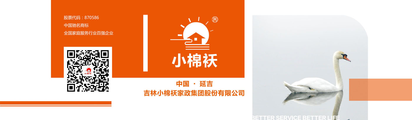 吉林小棉襖家政集團(tuán)股份有限公司成立于2004年6月3日,注冊資本4020萬元,主營業(yè)務(wù)有物業(yè)管理、培訓(xùn)學(xué)校、家政服務(wù),勞務(wù)派遣、保安、保潔服務(wù)等。先后安置下崗職工和農(nóng)村剩余勞動力就業(yè)二萬多人。公司先后榮獲:全國家庭服務(wù)行業(yè)知名品牌單位、全國優(yōu)秀民辦職介機(jī)構(gòu)、全國家庭服務(wù)行業(yè)百家誠信企業(yè)、中國清洗保潔十大標(biāo)兵企業(yè)、吉林省十大服務(wù)業(yè)品牌、吉林省守信用重合同單位、吉林省馳名勞務(wù)品牌、吉林省誠信維權(quán)先進(jìn)單位、吉林省清費者滿意單位等榮譽稱號。2011、2012連續(xù)二年被評為全國家庭服務(wù)行業(yè)百強企業(yè)。